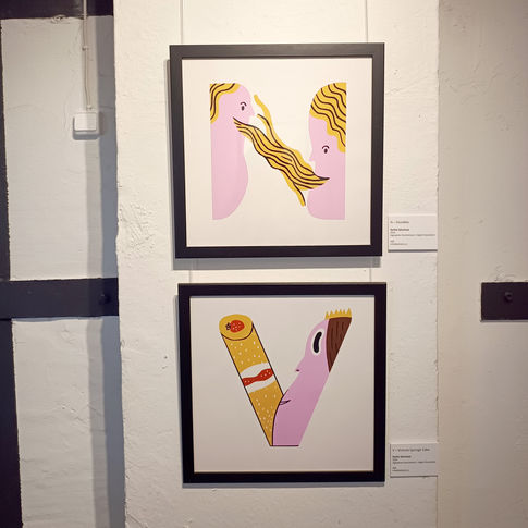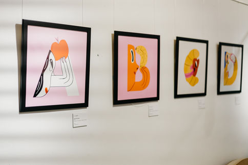 The exhibition showcased two projects: "36 Days of Type" and "Fun with Faces." For "36 Days of Type," I drew one food-related letter of the alphabet each day, all in a simple and humorous style. "Fun with Faces" is a collection of portraits completed as part of another week-long drawing challenge.